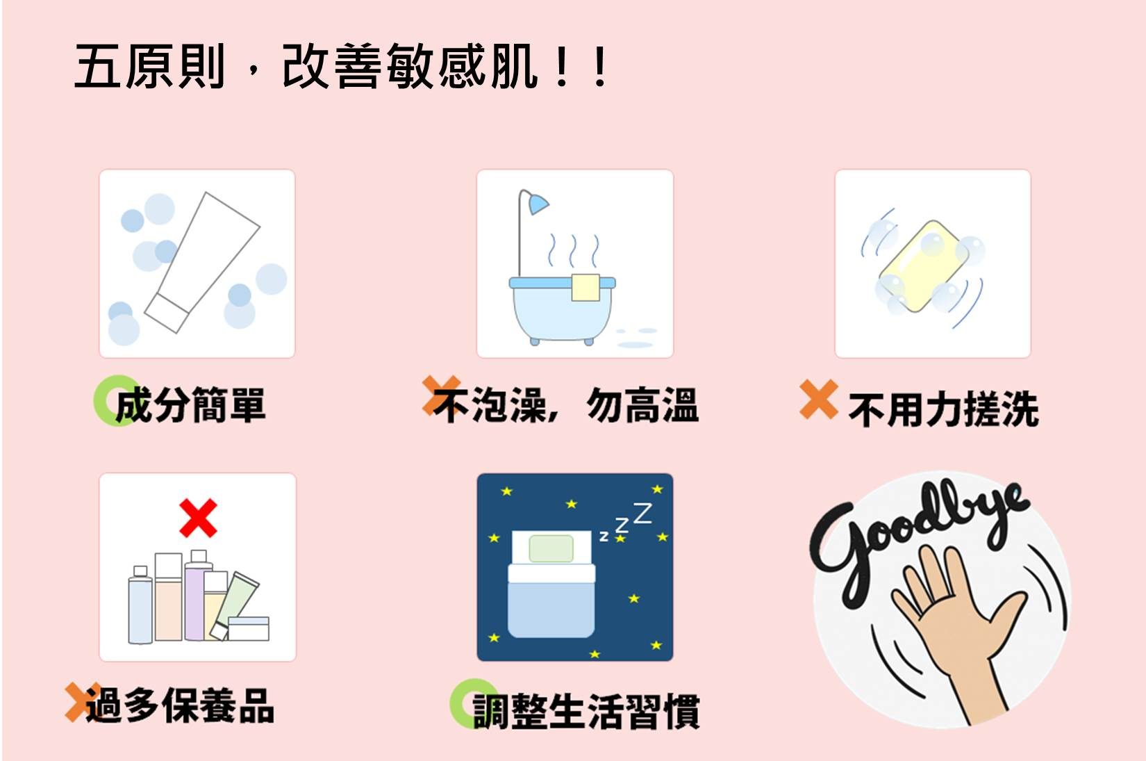 一、 洗臉時避免大力揉搓、不過度清潔皮膚,以免破壞皮膚天然脂質保護層